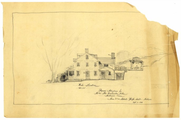 A quieter life awaited. In 1931, Homer resumed his teaching career at Yale, and the Pfeiffers moved together to Connecticut. They settled at 64 Mitchell Hill Road in Hadlyme, a historic neighborhood within the towns of Hadden and Lyme, in a 1789 colonial farm house nestled in acres of woodland. The Hadlyme district features numerous homes and buildings in the Georgian and colonial styles, places that provided plenty of inspiration for both Homer and Alberta as they worked on projects in the area surrounding Lyme. Some estimates suggest that they may have contributed to more than 200 homes, including many historic residences, both in Connecticut and elsewhere.