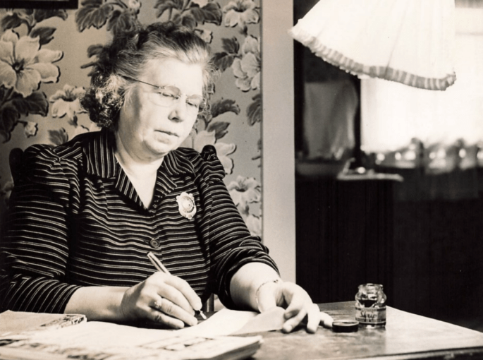 Through her genuine care for the people of her community and her fair approach to justice, Elizabeth quickly won the appreciation of those with whom she lived and worked. Still, it was a shock to many when she decided to run to keep the job of constable in November 1940—and an even bigger surprise when she easily won the election. She would go on to be elected to the post several more times, holding the job for a remarkable eighteen years. In 1942, she decided to sell the farm, moving into a house in town with her widowed sister, Clara Menke. There, she conducted her constable business from a small table in her home office. The work was mostly done on nights and weekends, giving her plenty of room for a full-time job at the American Device factory in Red Bud, where she made mail boxes.